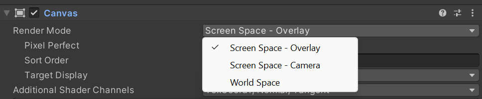 UGUI란? UGUI는 Unity Graphic User Interface 의 약자입니다. 유니티 에디터상에서 UI를 만들어 줄 수 있게 유니티에서 제공해주는 것이며. 기존에는 NGUI라는 유료에셋을 사용하였습니다. Canvas? Canvas는 게임화면에 대응합니다. 게임뷰의 해상도를 1280 x 1024라고 지정을 해놓고 작업을 한다고 생각하면 Canvas에서 RectTransform 에 있는 Width와 Height 가 각각 1280 * 1024로 되어 있습니다. 1:1 비율로 플레이어의 화면에 따라 대응하게 됩니다. Canvas의 Render Mode Screen Space - Overlay : 화면 좌표계에 대응하고 UI들이 스크린상에서만 존재하면서 모든 3D 오브젝드들이 그려진 다음에 마지막 U..