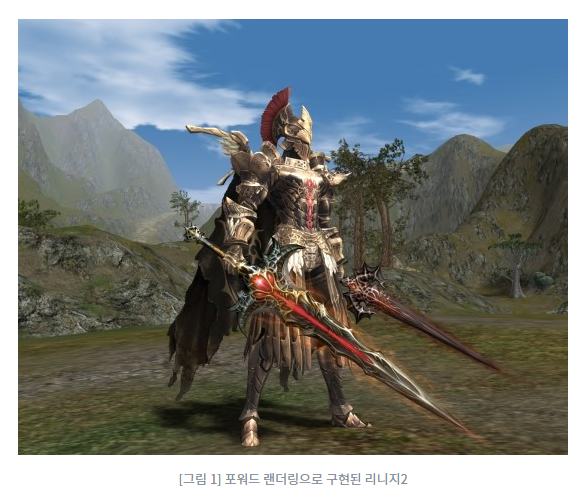 3D MMORPG로 대성공한 리니지2는 대표적인 Forward Rendering 방식의 게임이다. 당시 게임에서는 특별한 라이팅 처리를 하는것이 어려웠기 때문에 당시 출시된 게임은 화면이 비슷해 보이는 특징이 있다.